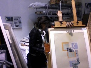Terry Acebo Davis has been too committed to her role as chair of the Palo Alto Public Arts Commission to make a trove of new work, but I cajoled her into showing one piece at her studio, at 4030 Transport (near San Antonio) in Palo Alto, which we turned into an installation, with the doll hands and the French easle. Studio-mate Cherisse Thompson noted a couple nibbles of interest but no Jonah-and-the-Whale gulp, nor even a Matthew Barney circa 2006 fake ambergris flow of support. Yet as her collector I find these pictures worth 132 words.