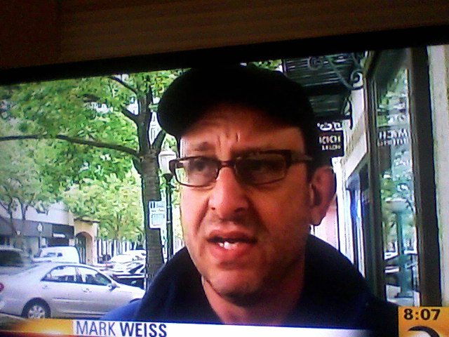 So this July morning, whatever else happens, is said, or sung,  Weiss is on record again regarding Chop Keenan’s showplace property, The New Varsity. He said, on KTVU Morning News, “Now that Borders is leaving, I think there is considerable community support for looking into the possibility of a theater or performing arts space.” (Sid Farhang of KTVU, a reporter with 20 years experience there, was shooting some footage and Weiss asked for a word with him).