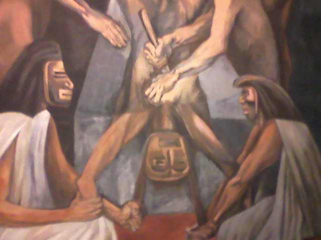capture of "Intolerable Cruelty" by Coen Brothers"Anglo America Hispano" panel by Orozco: I admit this would have worked better with photo of tribute to Juan Marichal