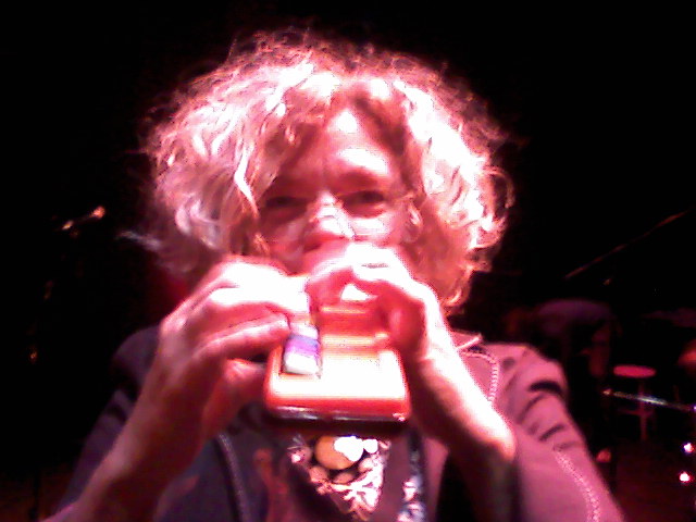 Beth Custer’s show as always was a solid sender. She said from the stage that she was interviewed on air recently by KALX’s Anthony Bonet, who is also the former booker for Bottom of the Hill, and that he had been spinning a chestnut of Beth’s from her catalog, which she re-added to her live set. Although she forgot to keep her promise of working a melodica solo into the show — she sufficed with clarinet, vocals, writing, bandleading and booking — she did humor me by demonstrating briefly post-show her melodica (see above). It’s a plastic instrument, like Ornette’s famous plastic alto, although more associated with Alphonse Ellis in this case. Beth and I have several schemes going, including a reprise of Beat Hotel Rm 32 (the Ginsburg Tribute), her Bone ‘N Drone project with Glenn Hartman and hopefully something arty-Indie (in the Fritz Scholder sense) like her commission for De Young Museum referencing their AOA collection.