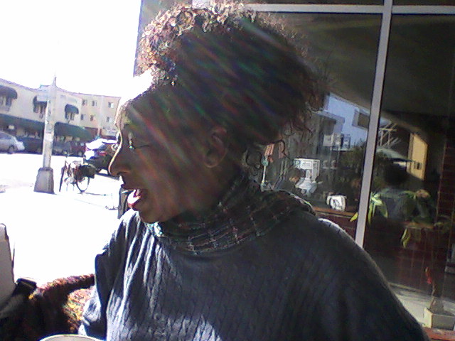 Earlier, Terry and I ran into Aleta in town and I took this back-lit shot of her that seems to be proving Doppler and Einstein and Anne Wintour or sometone all at once.
