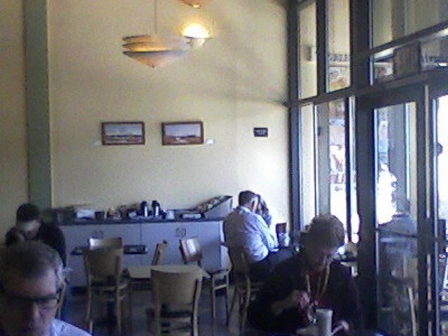 Printers Cafe in Palo Alto, March, 2012, people free to assemble, discuss drink of pour coffee, beer or tea.