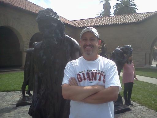 Devon from Pennsylvania indulged me in a shot next to the Rodins at the Quad. Not sure if the students’ project had them thinking any harder than I was about Rodin, Calais, Hundred Years War or Burghers. I didn’t realize, for instance, that Burghers, in the sense of commercial merchants, is the translation of the sometimes-cognate French word bourgeois. My European history is limited to one class with Wood and Lagomarsino, years ago (and for comparison, as far I as I know, my people, contemporaneous to the period depicted by Rodin, and nearly until the time of Rodin himself, were schutzjuden, meaning a protected class of not-quite-full-citizens in Eastern Europe and Germany).