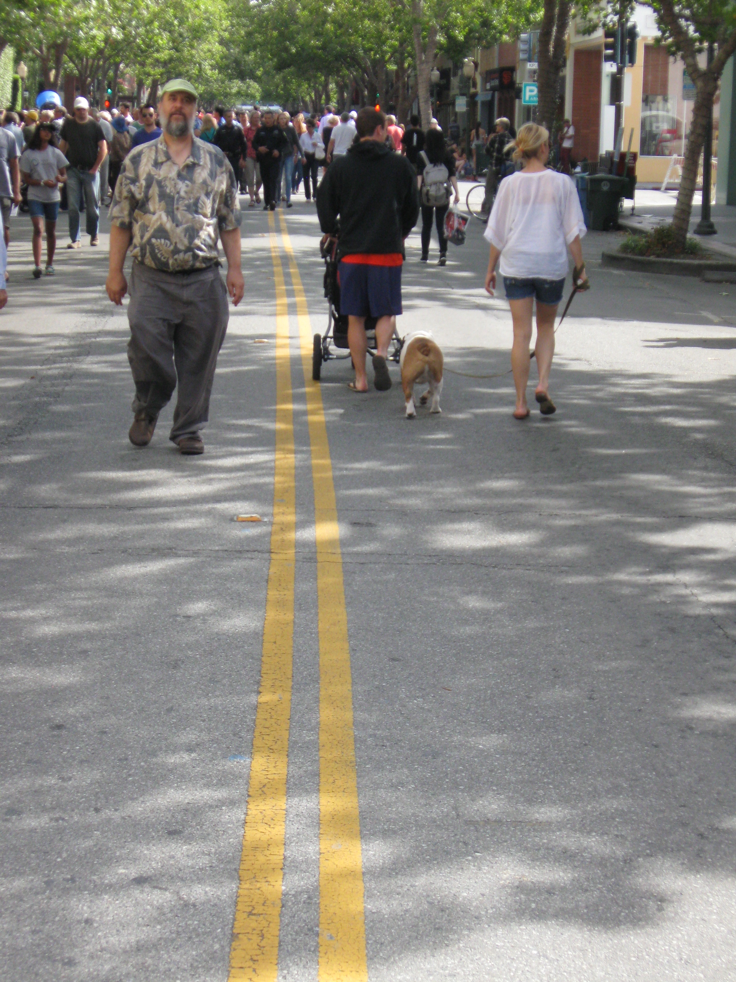The Weekly baited me into telling them how I really feel. Surprise, surprise. I almost never do this: I would say this is the cultural equivalent of government surplus cheese. It’s nice that the police got paid some overtime, however, if the musicians did not. By the way, First Amendment permits all Palo Altans to gather, sing, play, make music or noise up to a certain decibel limit, every day, all day, with few exceptions. Other than using an amplifier during business hours, which might distract the guys managing billion dollar hedge funds nearby, that is, at Lytton Plaza. By the way, whatever happened to our summer music in the parks serie? We have such nice parks, we should make better use of them. I would book some reggae and samba bands, with decent sound systems, into Heritage Park, Cogswell Plaza and Johnson Park playing all day and into the night (9-ish) for two or three days, and that would be a World Music Fest. Oddly, as we walked back home, even after an enjoyable couple hours, we were relieved to escape the din — most of those people are not used to playing in the streets and had really crappy sound systems. Palo Alto Jazz Quintet at 456 University had my heart skipping a beat in anticipation that someone with a clue would unlock the gorgeous courtyard of the historic and beloved theatre but that is too hip for organizers. Even letting Umami put a couple tables out in the vacant sidewalk (where Waverly t-bones into Uni) would have been a nice little touch, but no, Alo the manager said the City nixed this idea. Rupa Marya, a Casti grad who leads a world music band, would gladly play this event if someone would raise even the tiniest honorarium – -she’s never played here. She was holding the date the first year of this event but organizers wanted to hold the line on only unpaid musicians, like in France.