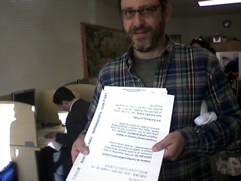—This is Mark Weiss and I resemble this message: TAKE BACK THE TOWN FROM POWERFUL DOWNTOWN AND DEVELOPER SPECIAL INTERESTS. (That’s me above casting my votes for Obama, Weiss, Schmid, Townsend and more).