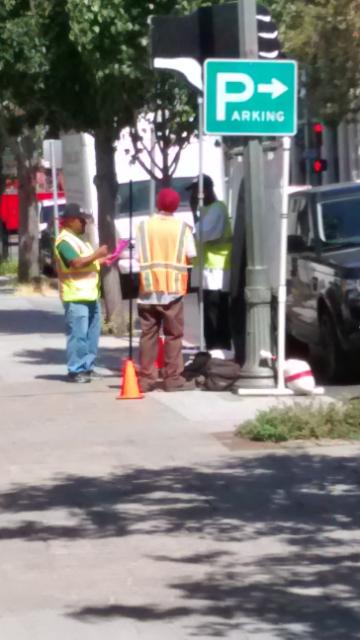 Three men who say they are part of a carpenters union are standing around on Emerson with a banner and say that in San Leandro a company I never heard of is building its new headquarters with non-union labor.