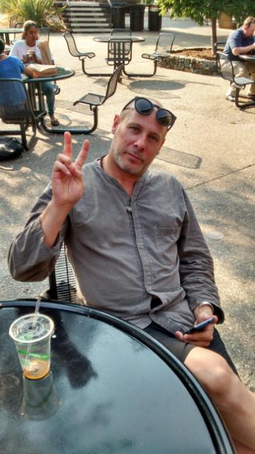 Ivor Holloway is a Gunn graduate and fulltime staff year-round for Stanford Jazz Workshop and camps. I met him Saturday for the first time since October 31, 1997 when as a high school senior he and three friends, under the monniker Gunn Jazz All Stars, opened for Charlie Hunter at Earthwise Productions at Cubberley Community Center. Josh Thurston Milgrom meanwhile said he had seen one or two or those five Charlie Hunter shows here (with five different combos incidentally, including Pound for Pound with Stephon Harris, John Santos and Scott Amendola or was it Stanton Moore). Ivor’s dad is in political science at Stanford, and lives in Palo Alto but said he is not likely to advise my campaign unless East Palo Alto gets nuclear weapons.