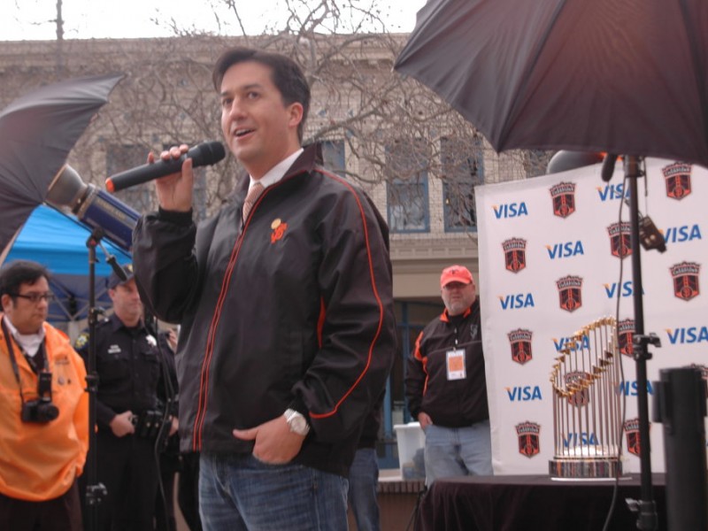 The San Francisco Giants baseball team, World Champions, are touring the area with their famous trophy. In 2011, I saw the trophy at Lytton Plaza, but did not wait in line for a real photo, just some shots from afar, and I soaked up the atmosphere. (I had been tracking use of Lytton Plaza, which is part of our parks system and not an asset of the Palo Alto Downtown Business Improvement District despite the chatter you hear at their meetings, or in their paper trail).