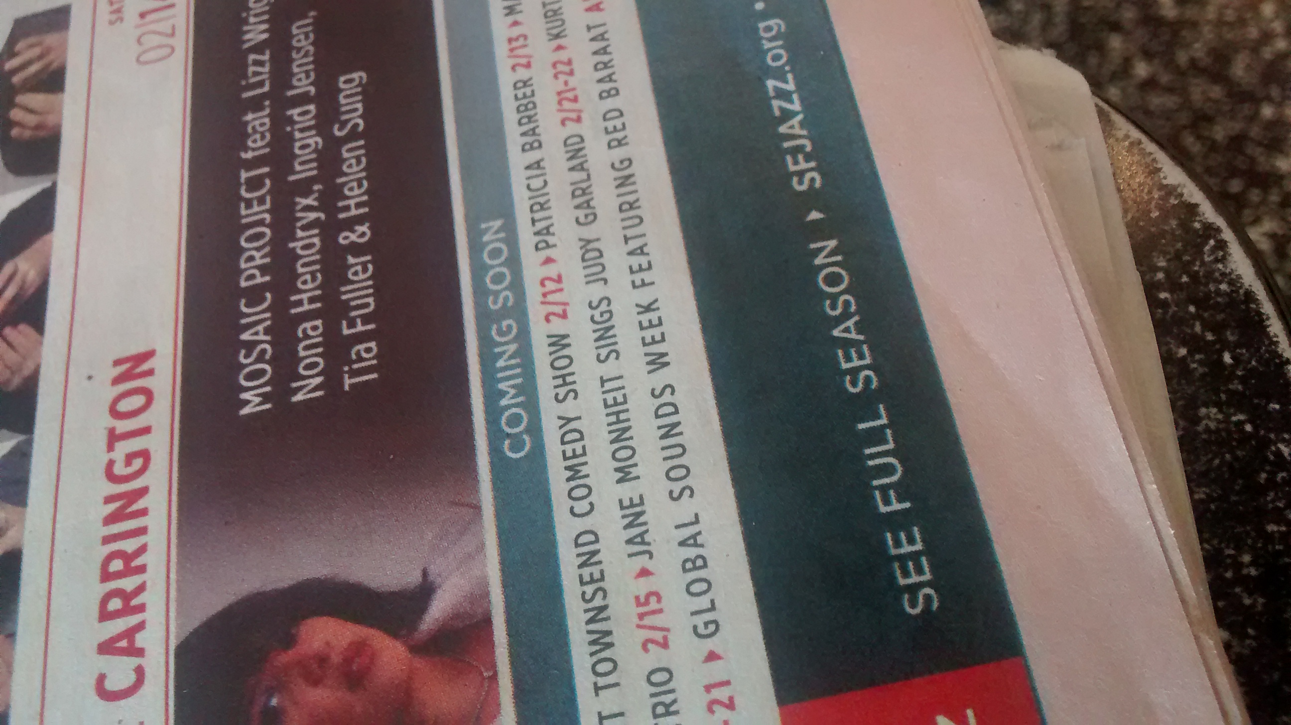 Patty headlines February 12. Helen appears as a side person and sister in sync with Terri Lynn Carrington, Sat the 14. Eric Reed plays that Friday, accompanying Mary Stallings. Quite a Six-hand package, I wonder where they might hang late night for a cutting contest WATCHIt . reminds of one night in Clermont with Henry Butler , Ivan Lewis of Cuba, Mulgrew Miller. Meanwhile Pharoah yes o before a except on SFI, Sanders I call him Little Rock or Farrell has 2 more hits. And speahikng of chix with sticks Alli Miller kumbaya as well.