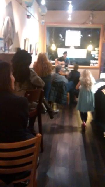 There are four people here I know well, plus the little girl (I have another shot of the girl and her mom). That’s Jerry Hannan performing. I have a bad portrait of Jerry’s partner Marika, blinking. I know the other dude here, as well. It’s more of an establishing shot of Cafe Zoe than group portrait of these woman and girls, in most circumstances. 7.