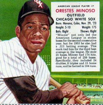 I had forgotten, but, besides the doubles of 1960 Topps Minnie Minoso that I am fixing to trade Gerardo for a haircut (or two?), as I inspect my manifest of the 76 cards I had in that binder, there were two older, and rarer and assuredly more tradeworthy Minnie, and that I if Cooperation did not had elevated our Orestes fellow former South Sider, to the pantheon with the Mays, Aaron, Koufax, Feller, Greenberg, Cy Young and “the purloined Gehrig.”