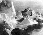 Picking up her electric violin, Kat joins Shackleton in a series of chantey-like songs that narrate the first part of the explorer’s incredible voyage as the “Endurance” becomes stranded upon the polar ice and subsequently crushed and sunk by it. Actual photographs and vintage film footage show the wreck.