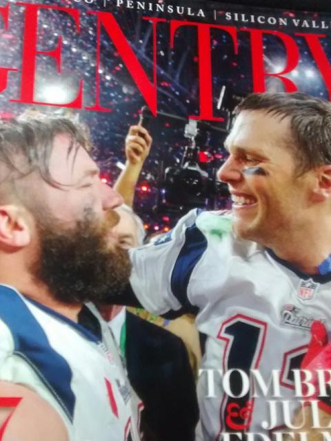 Something funny, I cannot quite put my finger on about Tom Brady (Serra) and Julian Edelman (Woodside High) on cover of this month’s Gentry