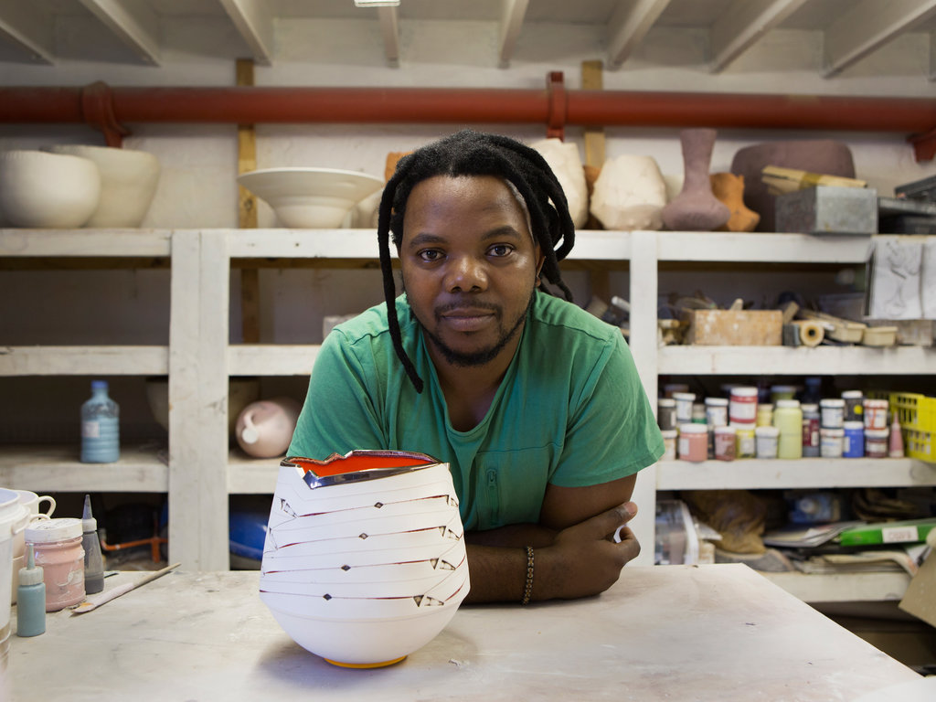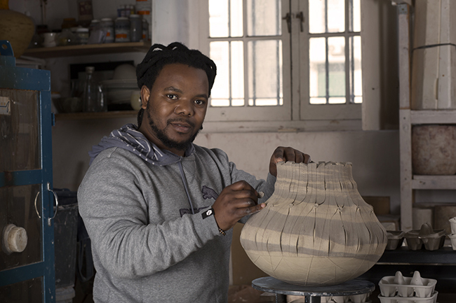 South African ceramics artist Andile Dyalvane visited the Palo Alto home of former arts commissioner Terry Acebo Davis on Sunday, July 26, during his local residency.