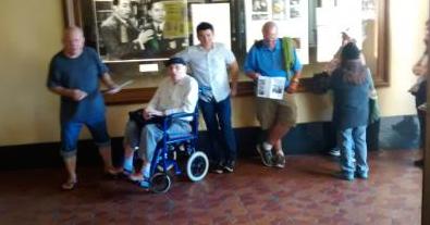Exactly one year ago, Dad’s 90th birthday, Lin escorts Dad and Michael our friend, waits in the ready. Some of us did shots.