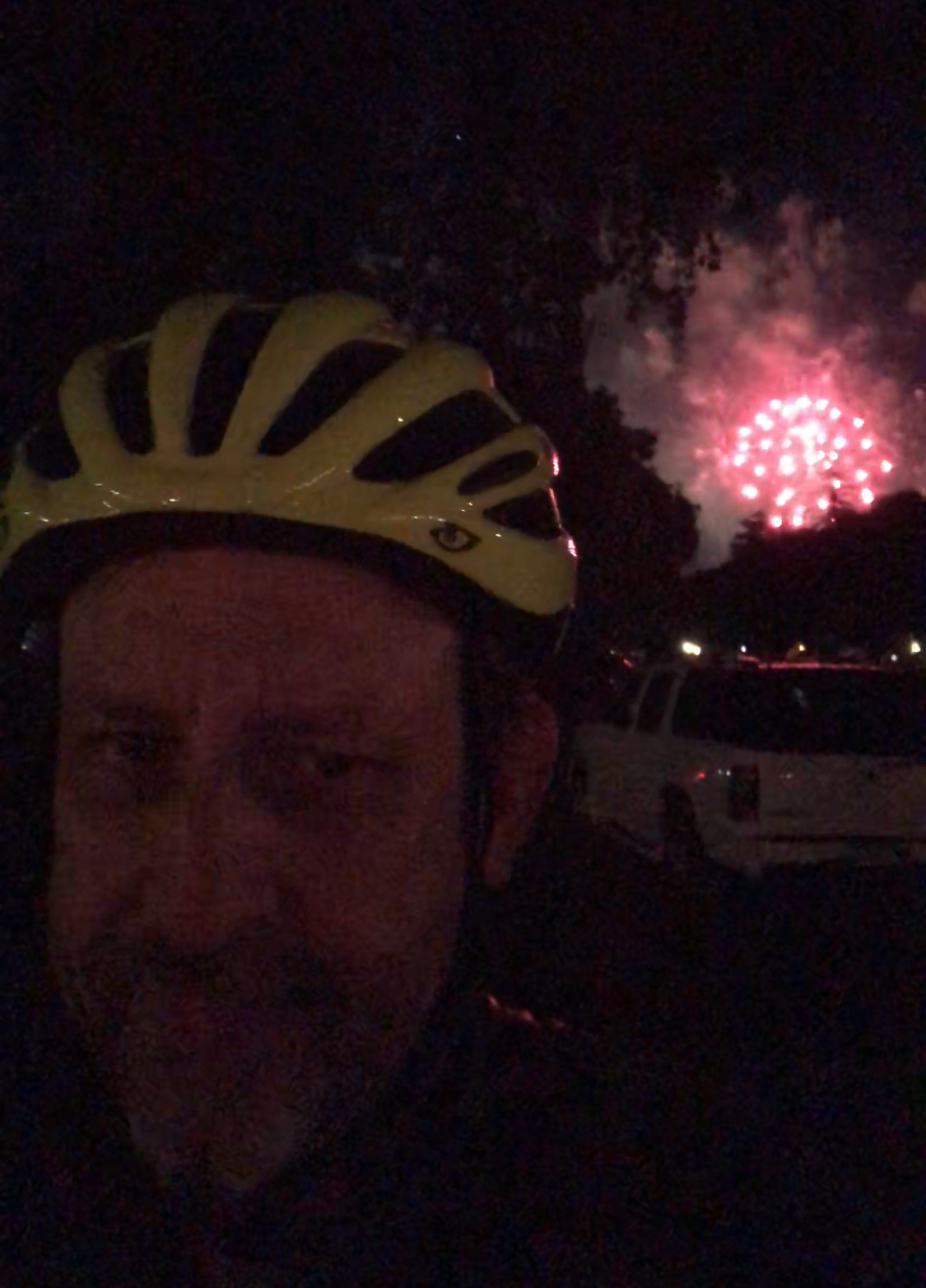 and1: speaking of which I look fairly pinhead-ish as I watch fireworks over Stanford Stadium last night after the San Jose Earthquakes defeated Los Angeles Galaxy 3-0 — I liked the Georgian guy, number 11.