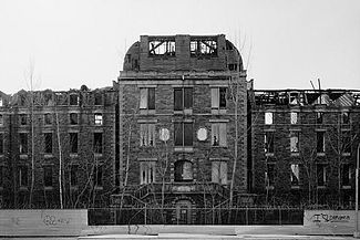 On a Sunday we traveled there with our friends from Pratt. There were two points on the island that we visited. The first was a sprawling nineteenth century building that had the aura of a madhouse; it was the smallpox hospital., the first place in America to receive victims of contagion. Separated only by barbed wire and broken glass, we imagined dying of leprosy and the plague.
