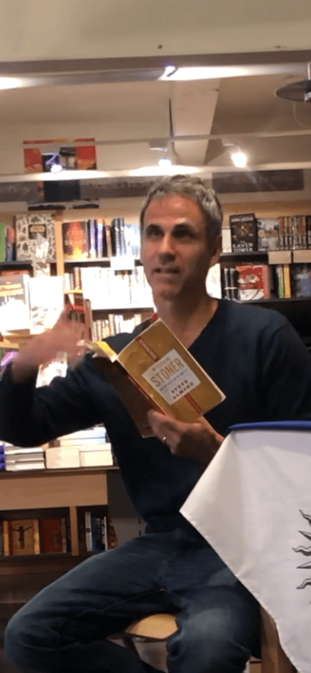 If you read this within the next 27 hours get thee to Books Incorporated at Town and Country to see, hear and feel Steve Almond, reading from, answering questions about, signing and selling his book {insert title of book about Stoner the novel from 1965, John Williams, and a long essay about everything else in Weird new almond joyful America}