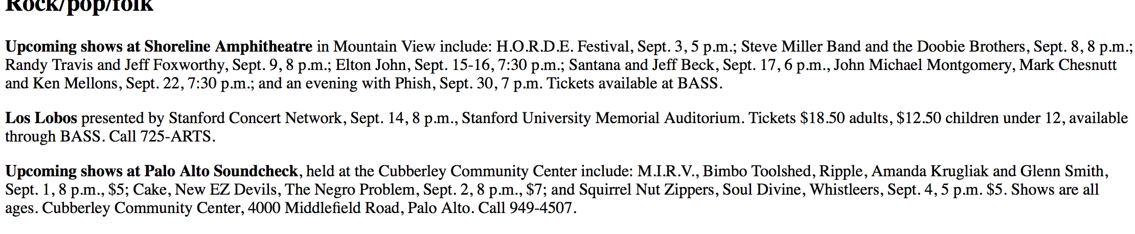 In case you dear reader or the agent I sent this to don’t believe my tale here is a clip from the Palo Alto Weekly that mentions the gig, the same holiday weekend as our first of two Cake gigs.