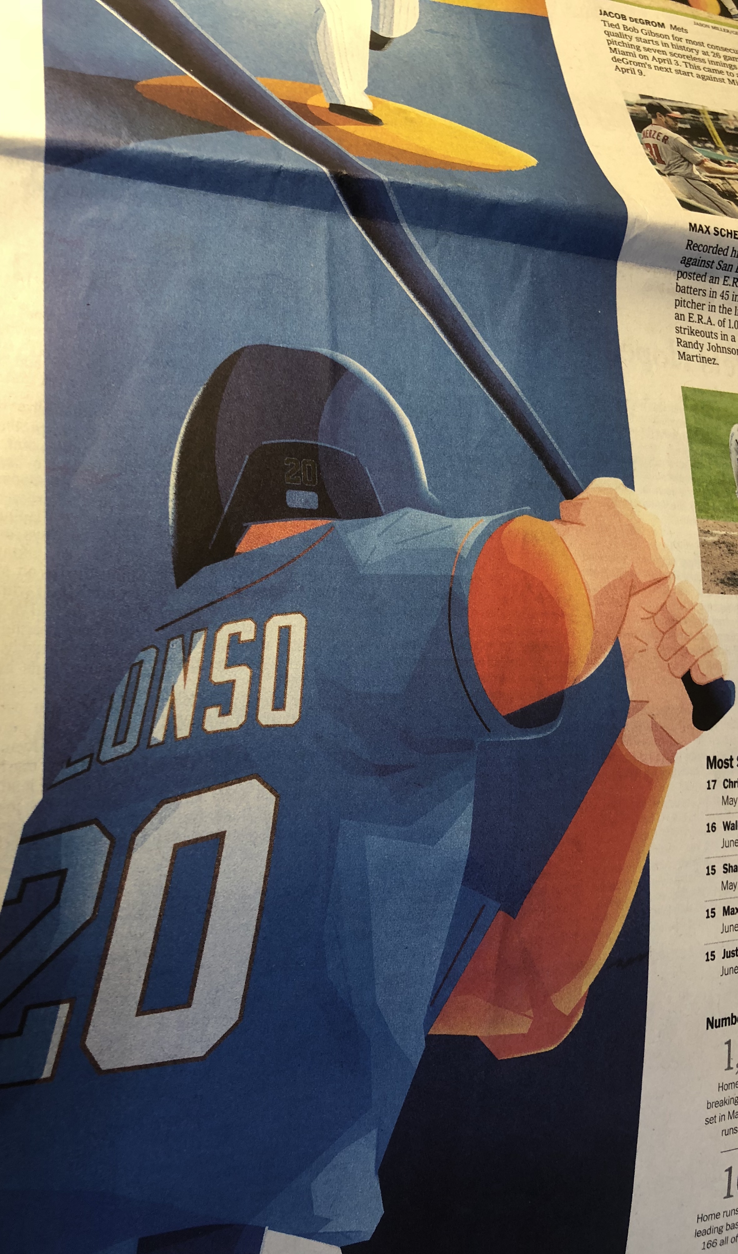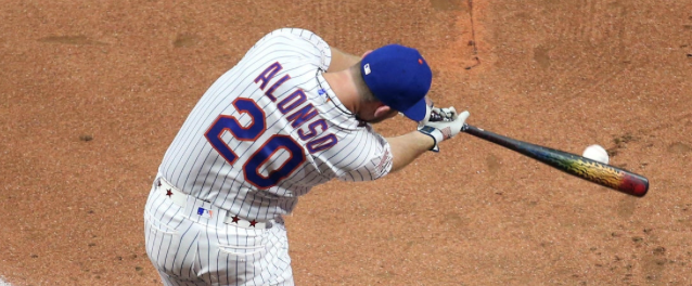 It’s artistic license but Alonso’s angle at the plate looks like he is hitting fungos to his third base coach.
