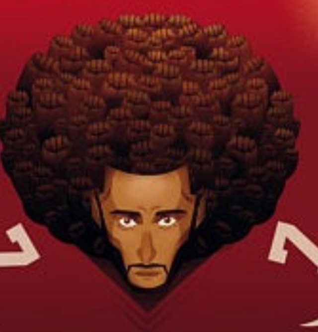 On your pages, I noticed your excellent Colin Kaepernick image, with fists for the fro. (Medusa meets Smith-Carlos).