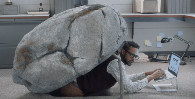 AndandAndandand — five layer and: so the candy bar Take 5 had a Super Bowl commercial but I don’t recall if this was before or after I finally noticed it, while being my not atypical 3 newspapers at Mac’s Smoke Shop on Emerson — I bought both kinds, the Reese-referencing and the Hershey-like, but then my wife threw them away before I had the op before here and now to rif upon a bar; but this thing with the guy who has been living under a rock — though insipid — I recall the image but not that it was part of the commercial. I may or may not have sampled a bite of one but not both the bars.