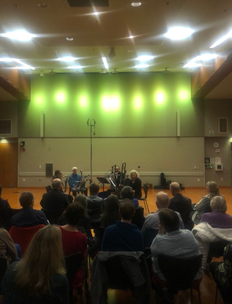 Klee, ‘Hall of Singers’; Mies Van der Rohe, ‘Model small city — concert hall’; City of Palo Alto, Clarinet Thing at Mitchell Park presented by Earthwise February 25, 2020