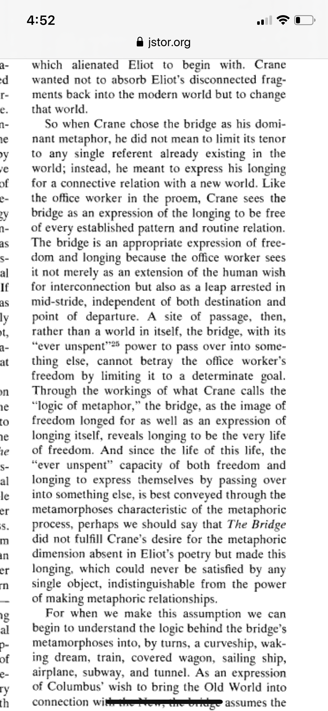 We are approaching the centennial of Hart Crane’s epic “Bridge”.