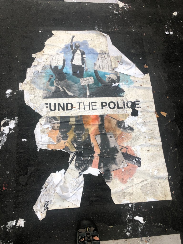 - Not sure I got to finish the story, later that day: Rebecca Eisenberg, soccer mom and laywer running for office, is meeting me at Uni ave to check out the “distressed” murals. I meant to say that the woman I mention above did a depiction of two cranes, one yellow and one black and she explains that her background is Okinawa near Japan and she believes Asian Americans have sympathy to Black Lives Matter. It literally says this. It also, at the top, near Bryant, closer to home as it were — I live on Bryant — and closer to the mural by Greg Brown of Spiro Agnew or not pushing an alien formerly a cat – -cat we all get along, peeps? — it says that the previous set of wheat paste posters — new genre wheat past — was destroyed by a young man with a gold can; there’s also a mural of a white guy and a spray can posted in this set: i think it calls him a coward. So is this second round of posters being cancelled worse than the first or are we getting numb? Did the rains come? Did a street cleaner start to clean then realize he was ruining the art or message? Heck, will it even be there when I meet Mz Beck? (who also reviewed Beck’s Odelay and nailed the title track.