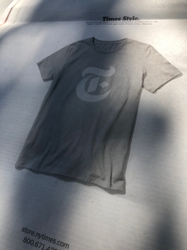 I bought a New York Times T-shirt but not the one pictured in the New York Times newspaper by cell phone from a lady in Philadelphia