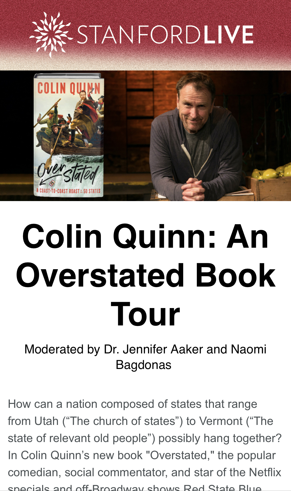 Colin Quinn livestream for $5 moderates by two very funny GSB professors, or your money back.