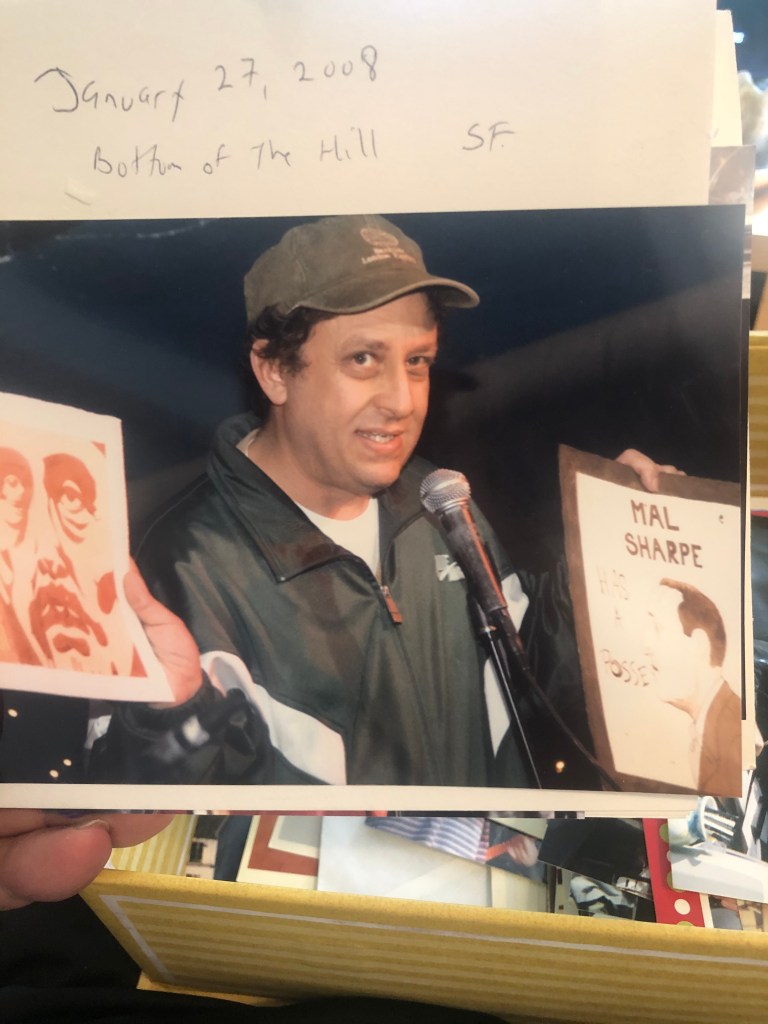 Mal Sharpe Has A Posse was a show within a show at the earthwise productions 15 year anniversary showcase at the bottom of the hill in January 2008. It started because I saw Danny Scher Corey Scher and Mal rolling into Yoshi‘s one night I think Charlie Hunter show would’ve been late or Christmas season 2007. Robert Syrett did the drawings and we sort of tried to auction them off at the show —Eric but no Steve Cohen bought them. Because of Covid he has not been near his files for six months otherwise I would’ve posted a better version of this and I just unearthed this in a box that my wife had hopefully head somewhere in my man cave.
