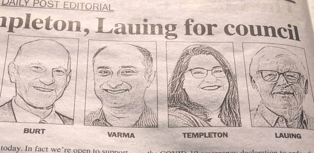 edit to add, six weeks after the election: I finally met Cari Templeton, at the Cali Ave street fair, and although she would not sing for my “When You Were Mine” contest, we did an interview on video. I ended up supporting her. I think her thesis on Brothers Grimm at Stanford was rigorous that she can think of herself as a Stanford grad. She also said she would “kick (his) ass” if Pat Burt bullied her. I recognized Varma at Old Pro or in front of the Old Pro having a social distance brunch but was afraid to say hi. Ed Lauing lost but is re-applying for commissioner again – I think they should give his seat to Rebecca Eisenberg.