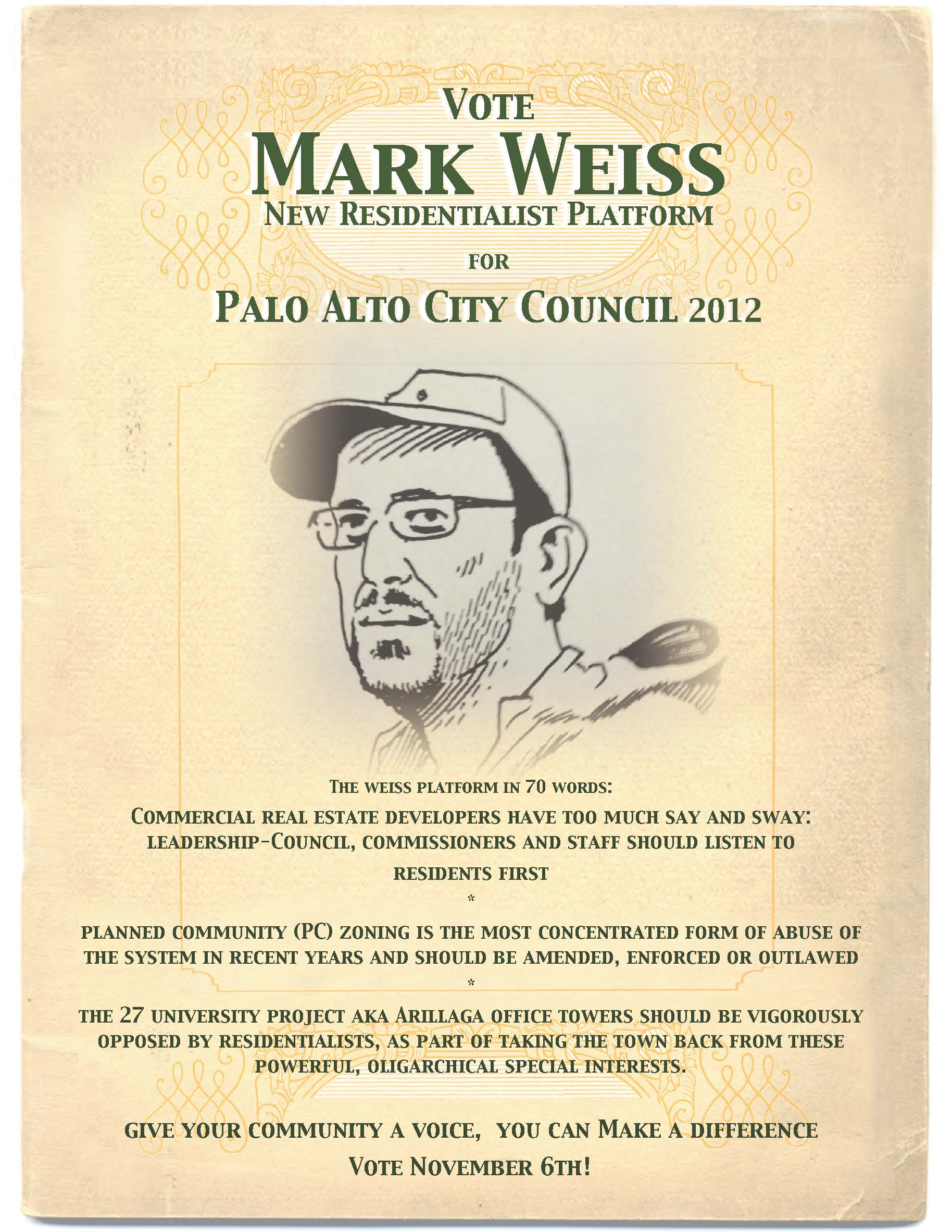 I am arguably the founder of the new residentialist movement in that I got 6,000 votes running under that doctrine in 2012. Tim Gray* and I were the only also-rans and each got considerable support and worked with each other comparing notes on how to describe whst we felt the problems were here. I was mentored by Tom Jordan who had knowledge of the original residentials movement from 1964. I also had meetings with Mrs. Pearson who was the founder of the movement. She showed me collateral and clippings from that era which had to do with fighting Hewitt packards movement to create an expressway for their benefit and it divides Palo Alto north and south among other effects. The residentialists — which is not limited to the role of PASZ — in Palo Alto have some thing of a push back against Silicon Valley or corporate hegemony which you seem to miss. Incidentally Mr. Jordan mentored Tom DuBois who was successfully elected but I still contend that he and Filseth and later Kou were sort of compromises. For example they represent Silicon Valley, the men and real estate she.