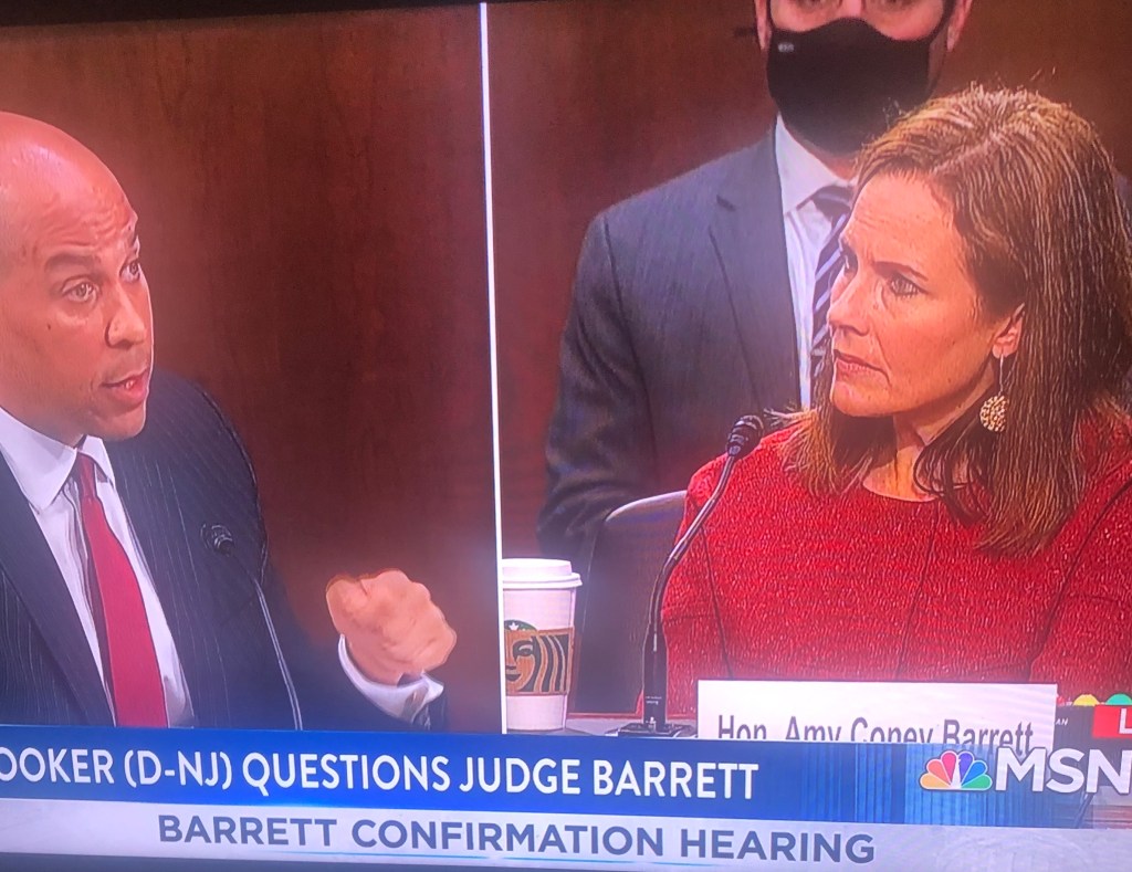 Does Barrett hearing product placement indicate or hints at her views on corporations as people and money as speech?