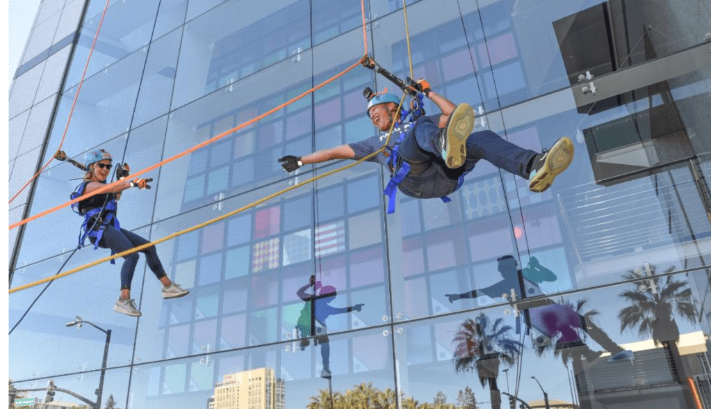 Actually my computer smartly reminded me that a year ago Steven Lee circulated this photo of him doing a charity event that includes rapelling by rope off a building, and since I have a friend named Hope Clark who is or was a Streb Dancer, I am including this for extra credit. So win or lose, Lee can respond next time with: I’m not musical, I’m not really a dancer, except in Plastic Alto. He lip synchs to Sara Bareilles “Brave” and I suggested he can garner a few more points potentially by submitting more content based on mimicking the dance moves in that video (seen by 110 million people).