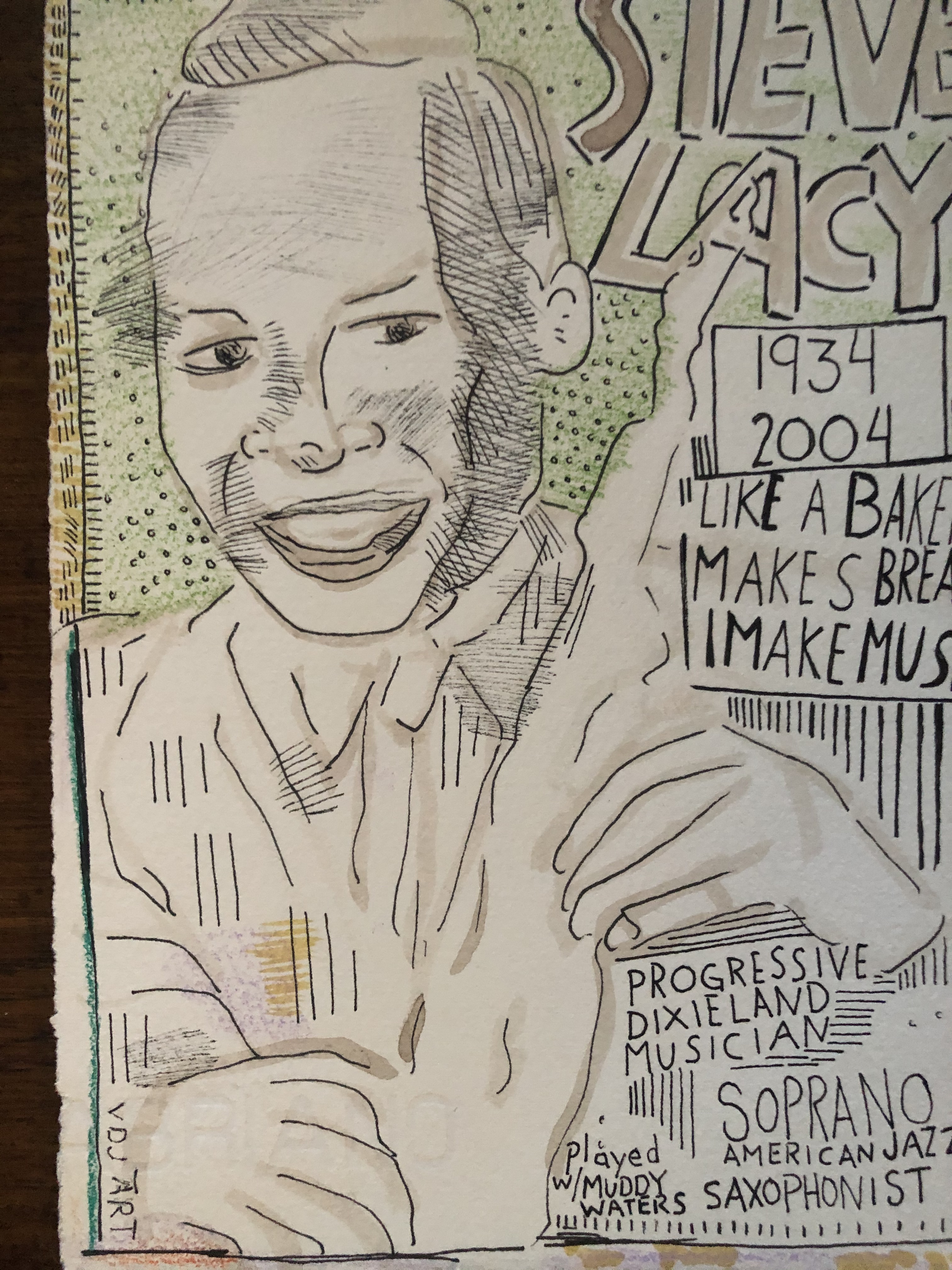 I’m not going to fault Veronica DeJesus for embellishing Steve Lacy’s resume: “played w/Muddy Waters”. I don’t think Steve played with Muddy — the person who might know is Bob Margolin, or Eric Hanson.