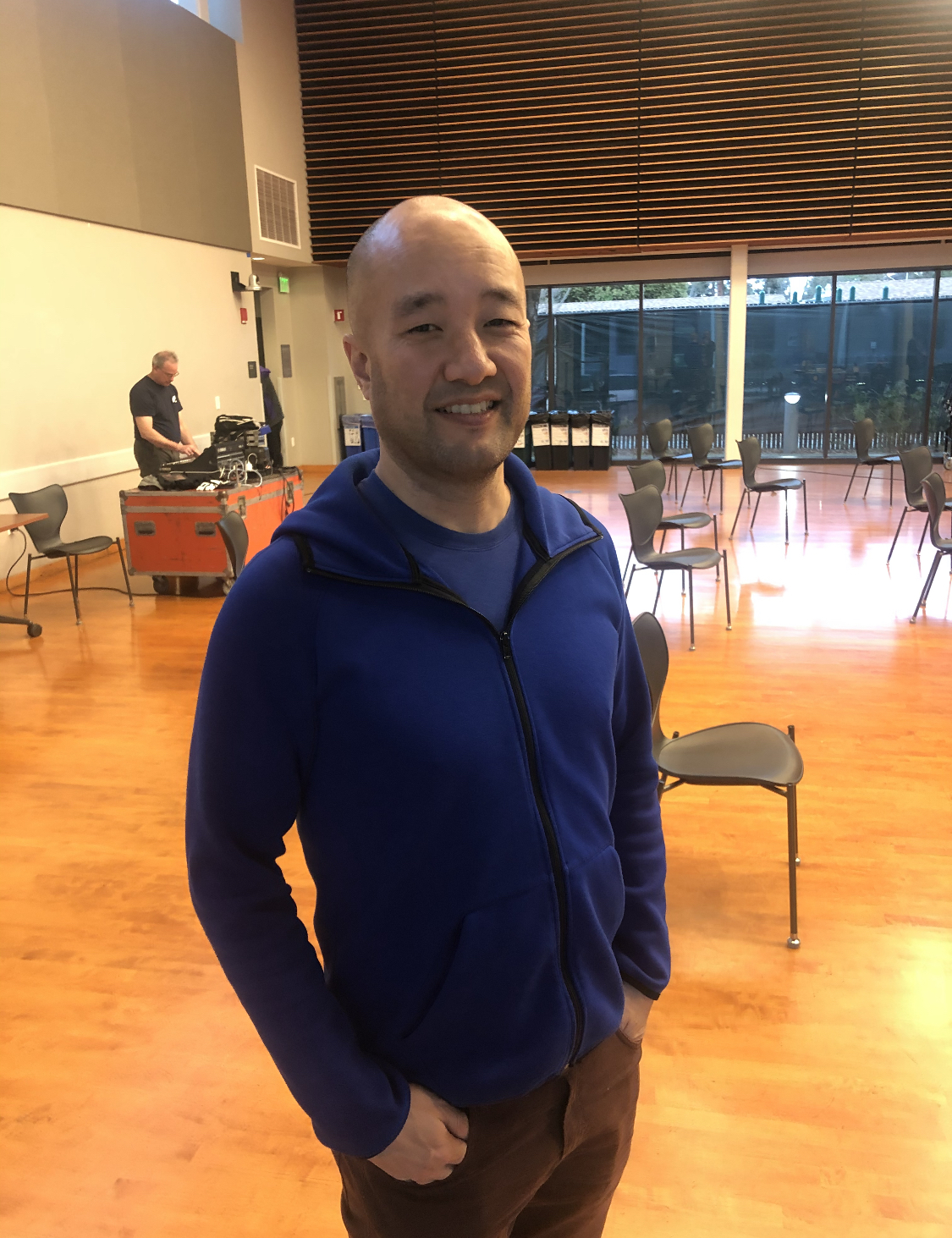 One is pianist Art Hirahara, in Palo Alto, on March 13, 2020; photo by Mark Weiss;