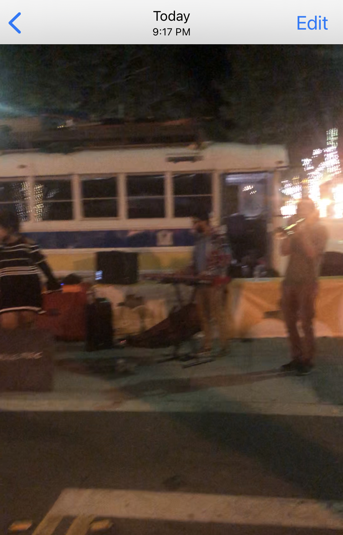 I might call my show with Hawktail at 7 pm. Saturday at Lytton Plaza as in about 96 hours “The Palo Palooza III’ because its the third time I’ve done an event that I called Palo Palooza in reference to Lollapalooza, which is in Chicago but used to be a tour. The first Palo Palooza was indoors at Cubberley and had Three Day Stubble and several other bands, in 1995. The second one was in 1996 and had Skankin’ Pickle unadvertised and several other bands, outdoors at Cubberley amphitheatre, very near where I voted recently. So I seem to be pretty surely adding a 2 p.m show with local musicians Savage Band featuring Jacob Savage and someone named Anna on vocals — they are the ones who played tonight at Ramona and University and pulled power from a white school bus. And then at 5, that is to say two hours before the Hawktail show, Tommy Jordan of Paly class of 1981 has a project called Service Human that will perform. I have no idea what they sound like other than they will march in and march out and set for a bit and play. Tom has played with people like David Byrne, Greg Kurstin, Jack Johnson and Tom Ze. He says this show is dedicated to his friend Chihsuan Yang, a violin player who was seriously injured in Los Angeles this month in a car accident.