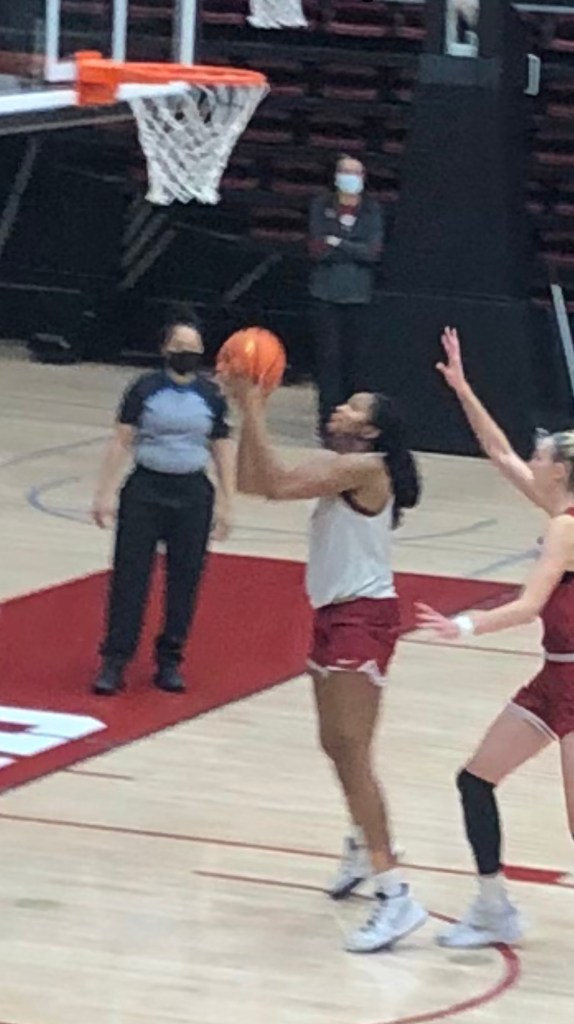 A stand out for Stanford in their red-white scrimmage sunday is Kiki Iriafen from Los Angeles