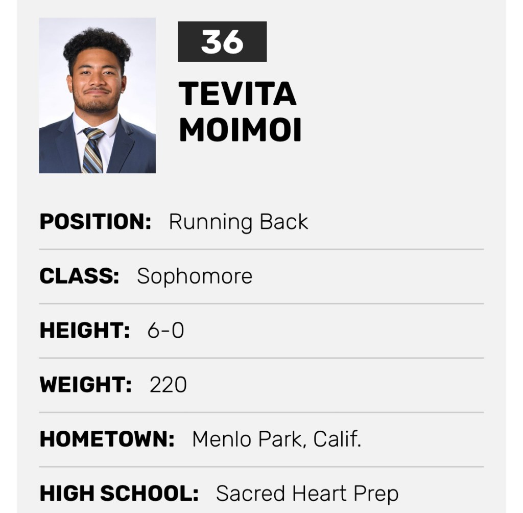 Tevita Moimoi scored 17 touchdowns for Sacred Heart of Atherton, CA and here in the 650 but has yet to tally for The Big Green.