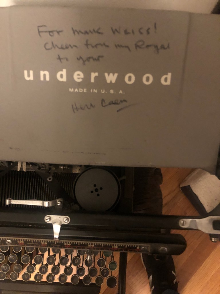From Herb Caen: For Mark Weiss! Cheers from my Royal to your underwood