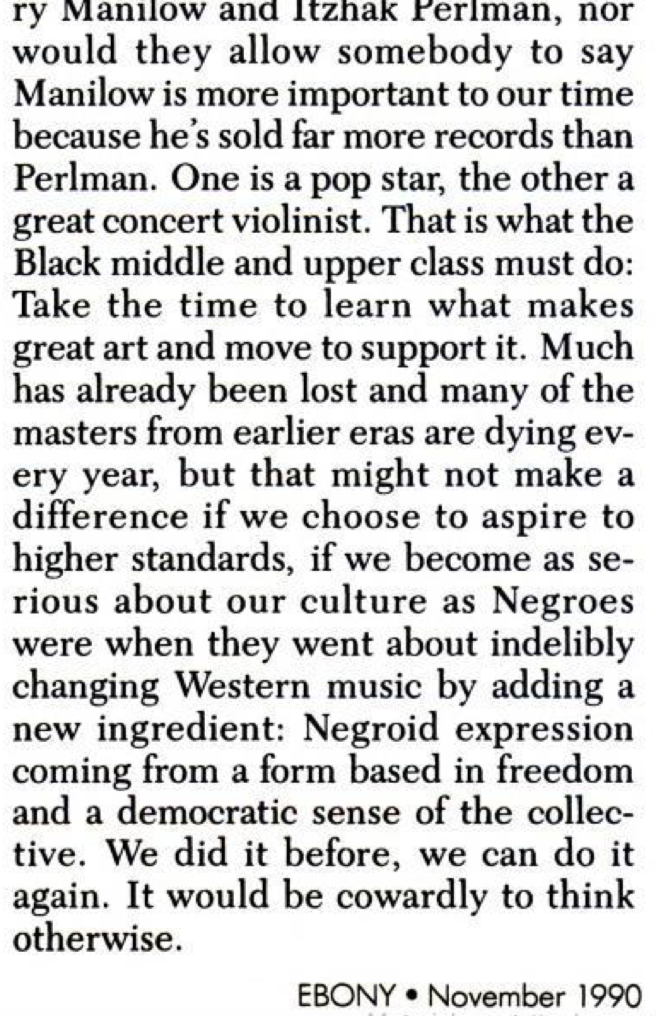 I also found an essay by Wynton Marsalis from 1990 Ebony – it’s archived on his site — and captured the closing two paragraphs: