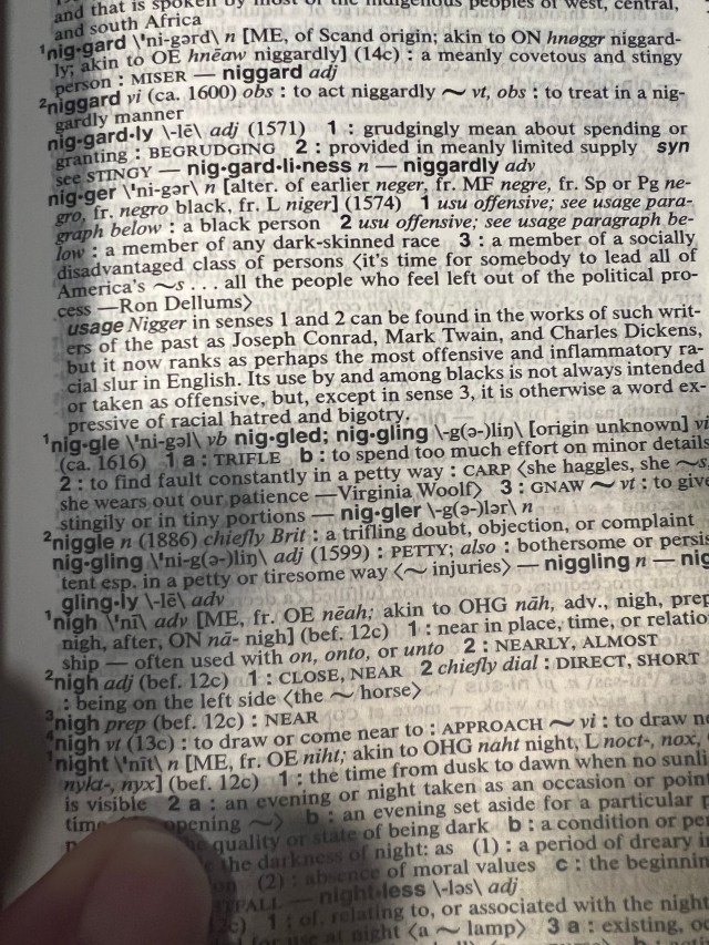 Coinkydinky is a coined phrase one of the few coined phrases that literally uses the word “coin”I was meaning to write this morning a post about the word “Negro” and the word (N-word) and the fact that between 1984 and 2018 they discovered 150 years of prior uses, that the word dates from 1550 not 1700 I’m referring to Webster’s ninth versus Webster’s 11th of course of course I took with noel Perrin or Peter Saccio At Dartmouth in the 80s — I took James Shapiro but it was Marley not Othello; Strike that it was Marlowe not Marley—DAM bully fool