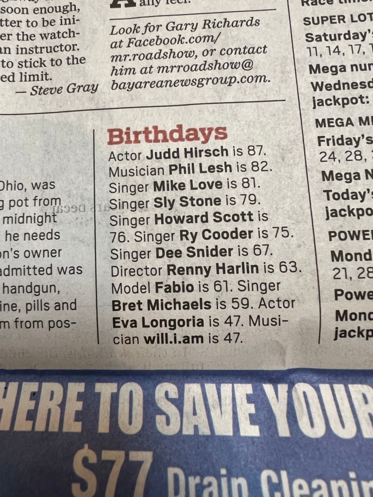 Judd Hirsch, Phil Lesh, Mike Love, Sly Stone, Ry Cooder, Dee Snider, Bret Michaels, Eva Longoria and will.i.am are 624