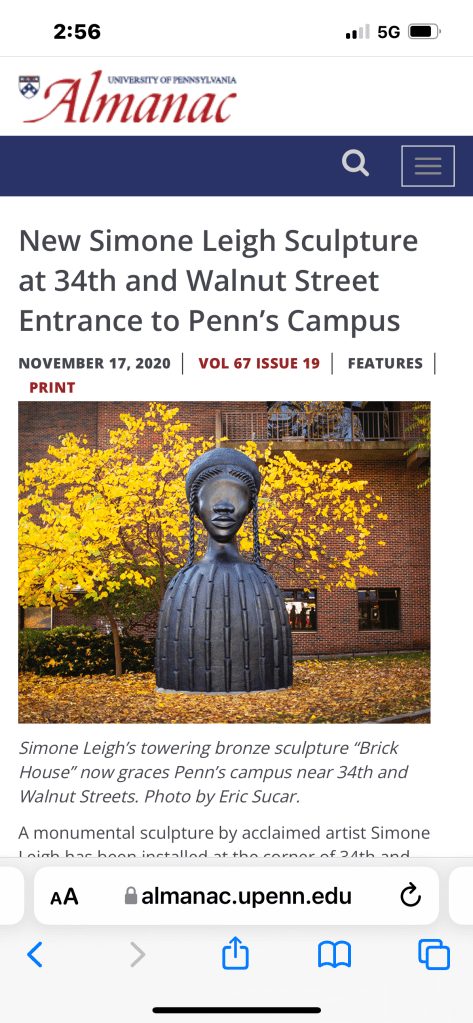 I am not sure I had heard of Simone Leigh until an hour ago but now I am a world expert