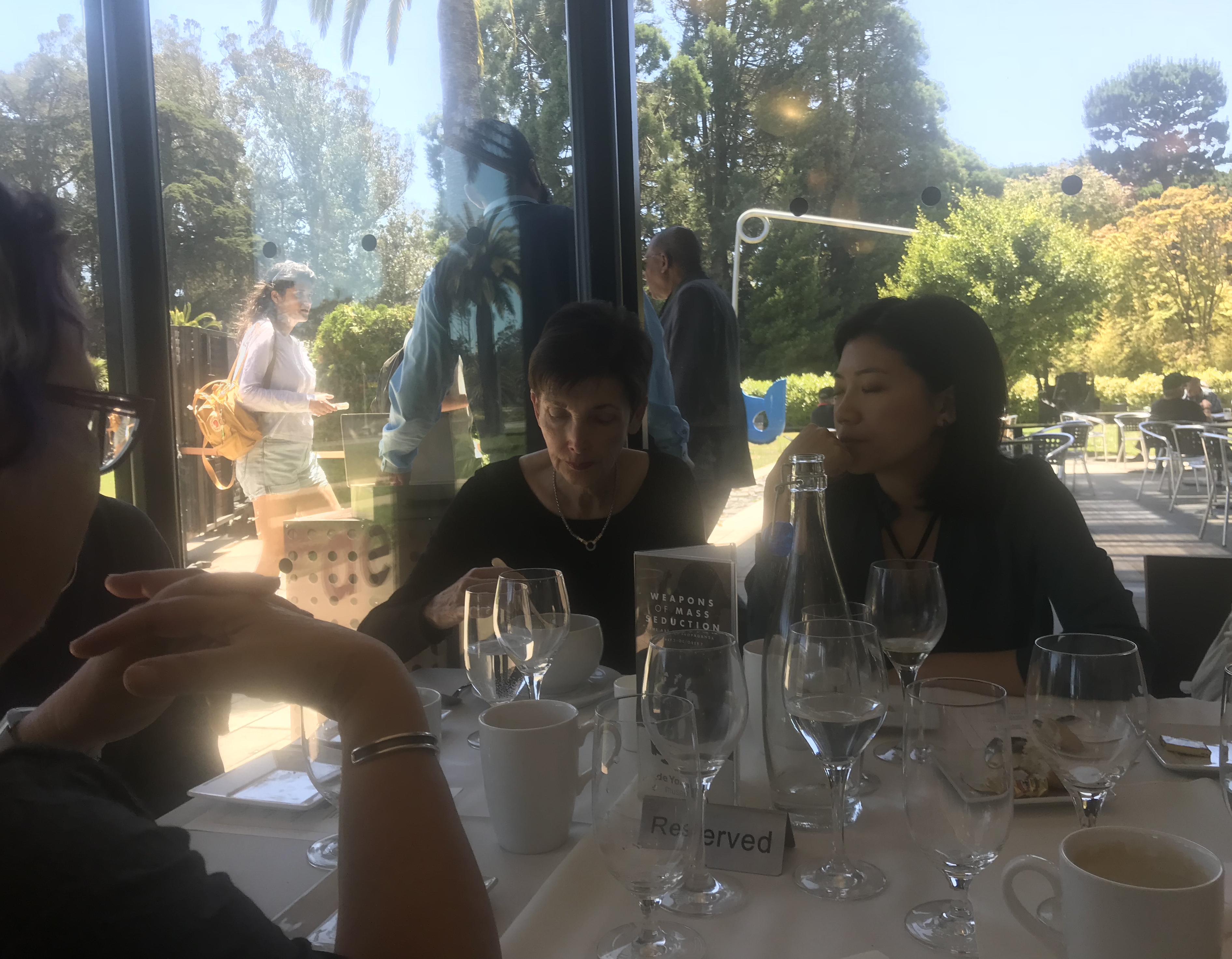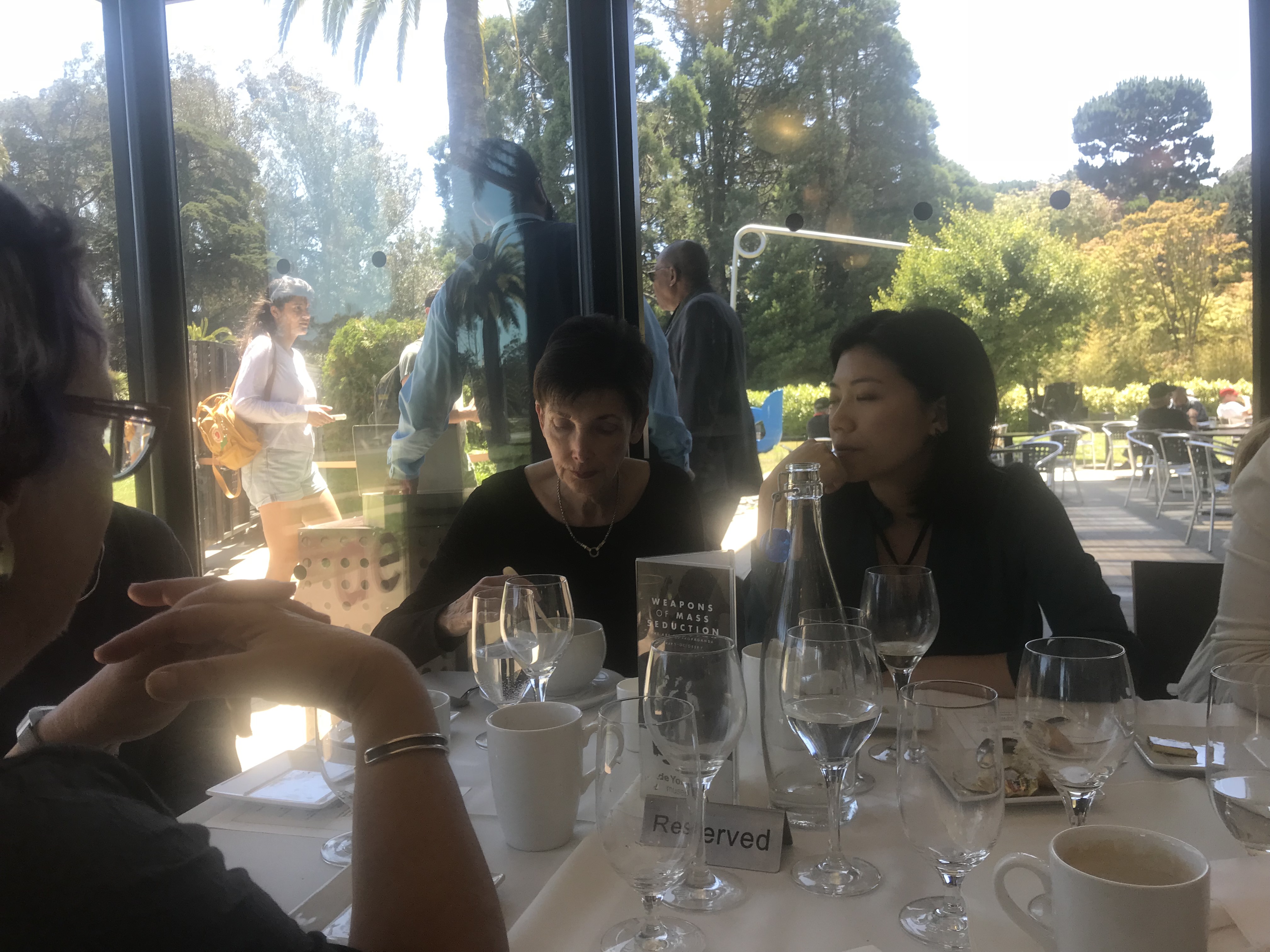 This doesn’t belong here but my phone died before I could post the 11 documentation photos of my little run of mischief this a.m. but I did find this photo of 11 women touring with curator Emma Acker her show at DeYoung about Precisionists: