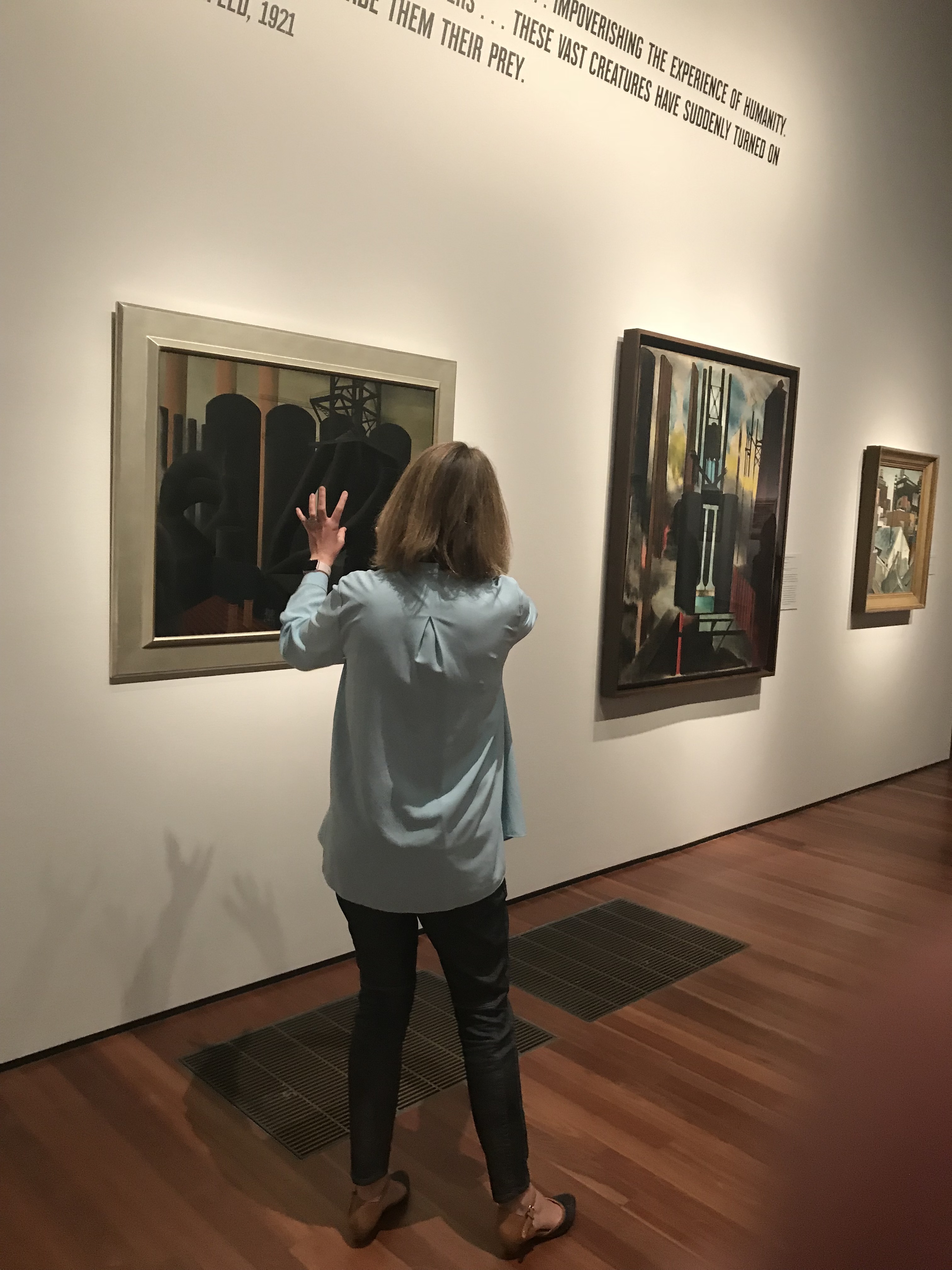 This doesn’t belong here but my phone died before I could post the 11 documentation photos of my little run of mischief this a.m. but I did find this photo of 11 women touring with curator Emma Acker her show at DeYoung about Precisionists: