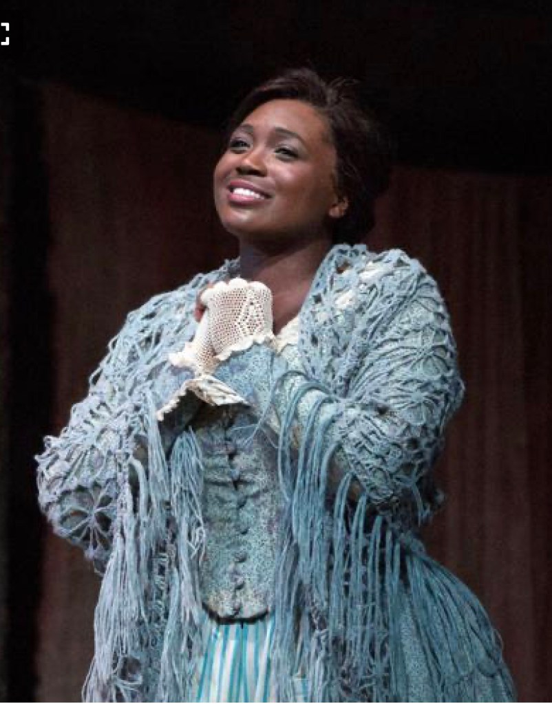 The New York Times has a story on Sea to arts today about soprano angel blue withdraw from an opera protesting the use of black face in Aida. I had not heard of her but she has done recitals last year at Santa Fe opera and earlier this year at Cal performances . She is a graduate of the performing arts high school Los Angeles and his age 38. She saying Bess in Porgy and Bess at SF opera and also I had a role in an opera based on the great Gatsby as myrtle Wilson married to George Wilson who runs the garage??