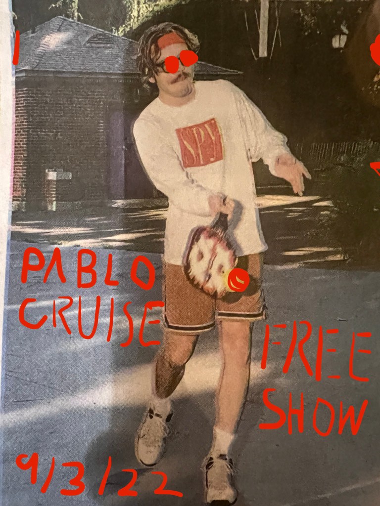 Monday, 9 am — at work all this week advancing my Pablo Cruise. Show. Look for our flyers in the windows of hipper Palo Alto and area stores.